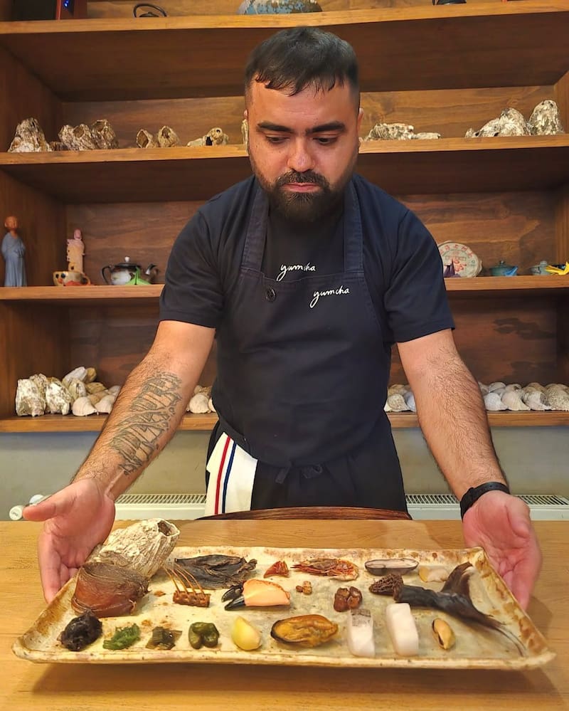 Este año, Yum Cha saltó al puesto 28. Sin embargo, la medalla más importante ocurrió mucho antes. El 2024, cuando Tapia comenzó a estar bajo el foco internacional, sus padres viajaron por primera vez a probar la comida de su hijo. Entre casas residenciales, conocieron el interior de Yum Cha, que esconde conchas en paredes azules que simulan el mar. Al probar los bocados de salsas y pescados acompañados con maridajes de tés, sus padres finalmente comprobaron el talento que había cosechado su hijo.