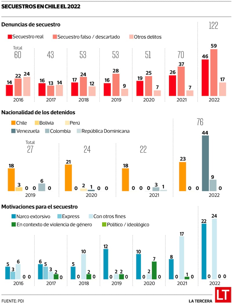 Este caso es uno de los 46 secuestros que la PDI contabilizó durante el 2022, lo que refleja un incremento del 76,9% respecto al año anterior, cuando hubo 26 situaciones de este tipo (ver infografía).