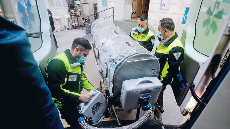 En paralelo, y ante la alerta al grupo Evacam por un posible traslado, comienza el chequeo técnico de equipos, baterías del ventilador de transporte o de recambio de los filtros HEPA (de alta filtración de aire particulado) que se instalan en las cápsulas de aislamiento. Así, el procedimiento completo, hasta que el paciente es entregado en el centro de destino, puede durar 14 horas.