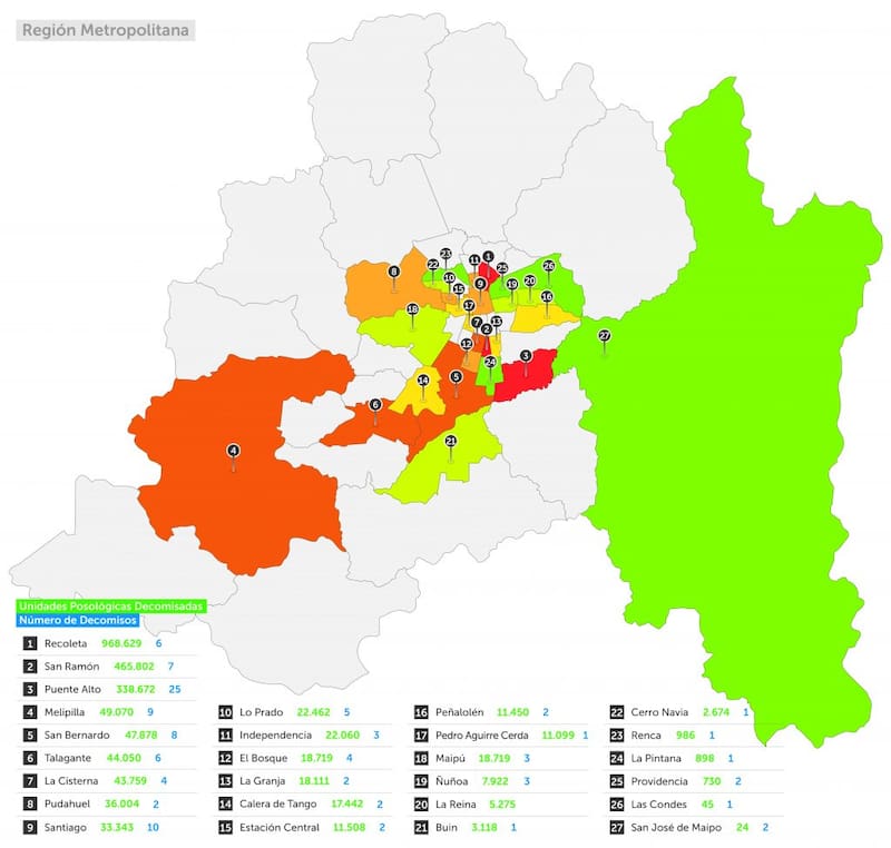 En la Región Metropolitana, Puente Alto es la comuna que más decomisos ha registrado,