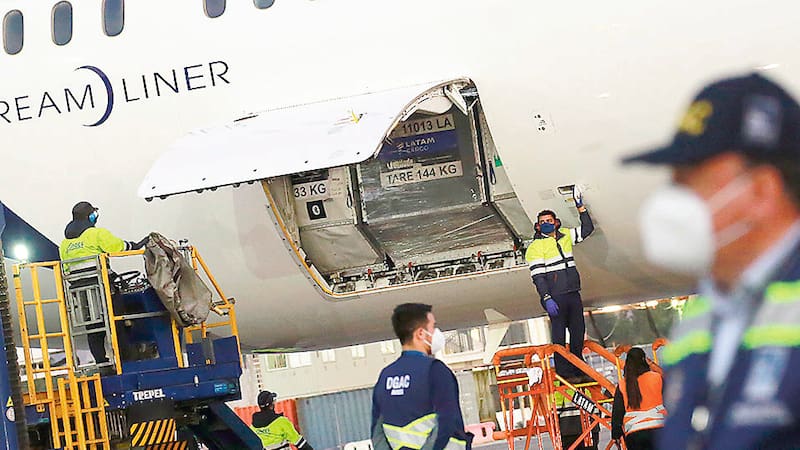 Gloria Hutt, ministra de Transportes, explicó que las autoridades “pusimos como prioridad máxima la llegada de estas vacunas al aeropuerto, por lo que se coordina que el lugar de aterrizaje del avión sea el más cercano posible a los lugares de almacenamiento donde la aduana hace la revisión física y documental”.