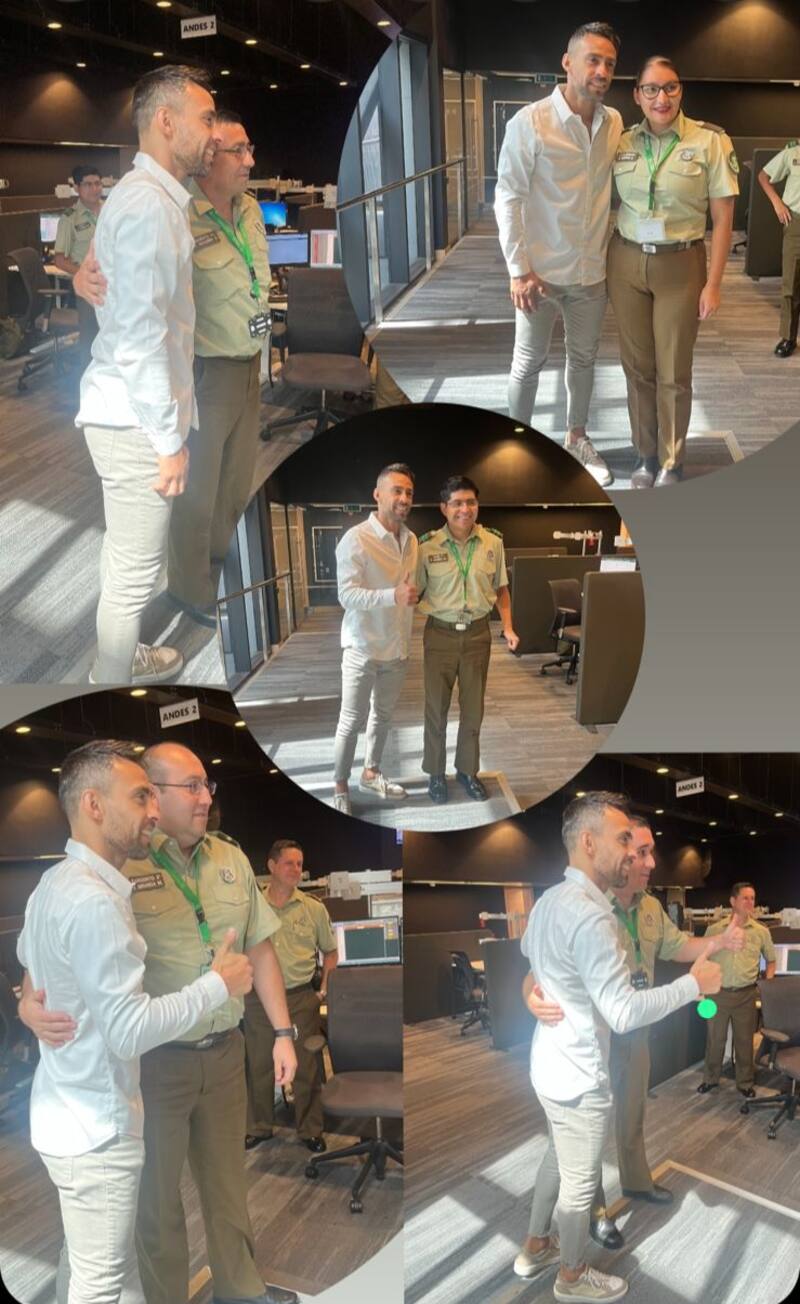Ya en estas modernas instalaciones de Carabineros, los oficiales de menor rango se tomaron fotografías con el exfutbolista e, incluso, el teniente coronel de la Central de Comunicaciones (Cenco), Christian González -lugar donde se monitorean casi todos los procedimientos de la policía- le ofreció mostrarle cómo funcionan las cámaras dispuestas en la ciudad.