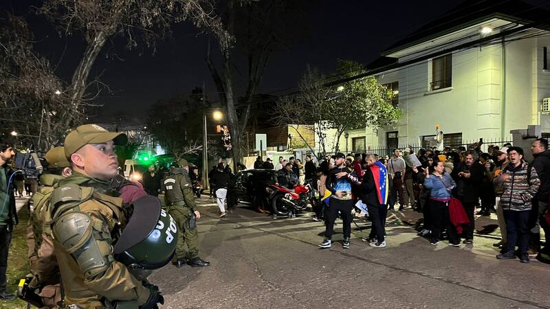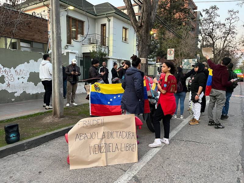 En medio de la entrega de estos resultados, decenas de personas -en su mayoría venezolanos- realizaron diversas manifestaciones durante la tarde de este lunes en la embajada de Venezuela en Chile, ubicada en Providencia.