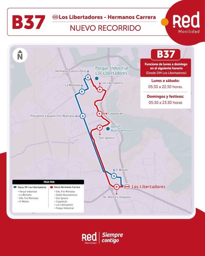 Este sábado se inauguró una nueva extensión de la Red Movilidad. Se trata del recorrido B37 que conectará Colina desde el sector del Parque Industrial Los Libertadores con la Línea 3 del Metro de Santiago y que beneficiará a cerca de 6 mil personas semanalmente.