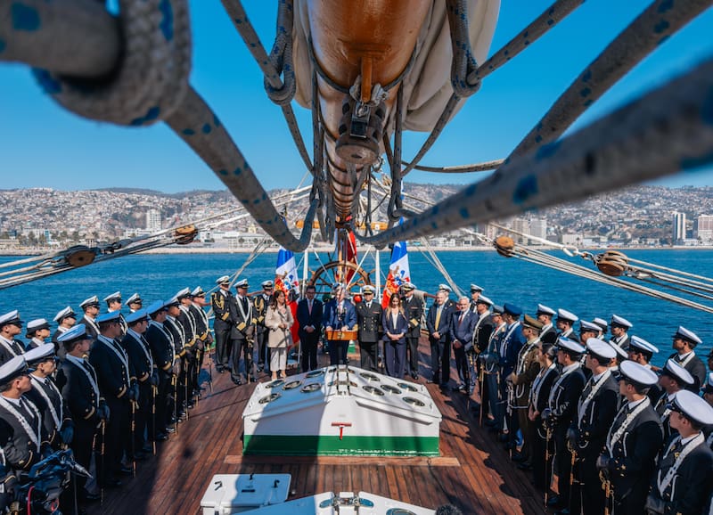 Pasado el mediodía de este miércoles, el Presidente José Antonio Kast encabezó la despedida de la dotación del Buque Escuela Esmeralda, en el marco del inicio de su 70° Crucero de Instrucción.