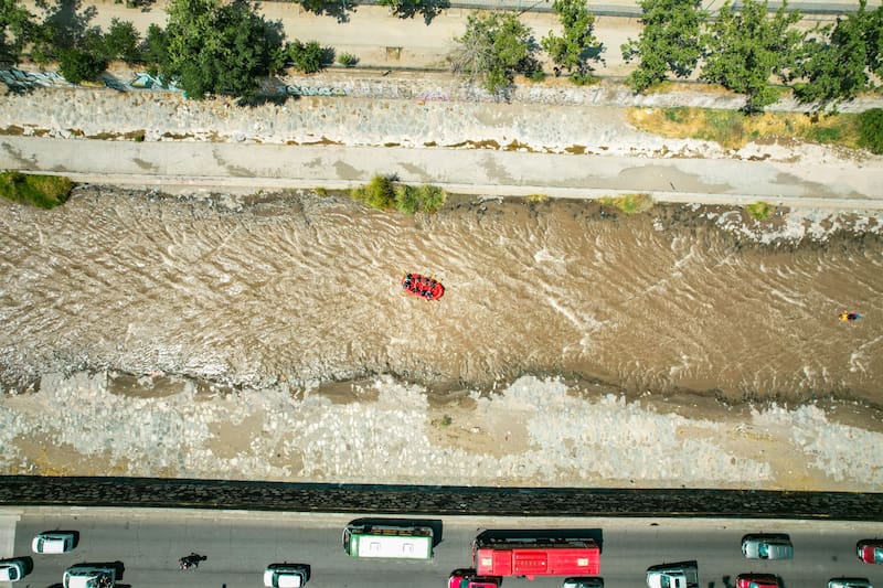 El gobernador de la Región Metropolitana participó de un descenso por el río Mapocho en balsa para concientizar sobre la importancia del cuidado de los ríos y recordó la propuesta para su protección legal.