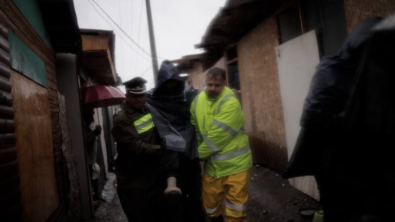 Algunas de las familias que evacuaron el campamento aceptaron irse a dos albergues municipales que se dispusieron en la Escuela Casas Viejas y el Liceo 115 de la comuna, en donde permanecerán mientras se mantiene la emergencia climatológica.
