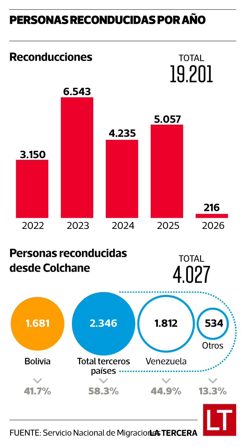 Con La Paz no había un acuerdo para lograr este tipo de procedimientos, lo cual recién se consiguió en marzo de 2025. En total, desde la entrada en vigencia de este mecanismo y considerando a todos los países fronterizos, se ha reconducido a 19.201 personas.