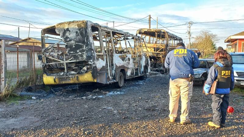 El subcomisario Víctor Díaz, de la Brigada de Investigaciones Policiales Especiales de la Policía de Investigaciones de Temuco, indicó que “nos trasladamos hasta la avenida Los Alerces sin número de la comuna de Imperial, lugar donde se procedieron a realizar las primeras diligencias investigativas, con el fin de esclarecer el incendio de dos buses y un automóvil”.