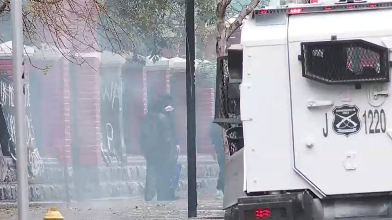 Según explicó el mayor Marcos Bahamondes, jefe de la Cuarta Comisaría de Santiago, a CNN Chile, los manifestantes habrían lanzado objetos incendiarios contra el personal policial apostado al exterior del establecimiento educacional. Además, uno de los manifestantes, que sería alumno del recinto, habría resultado con lesiones por el uso de bombas molotov.