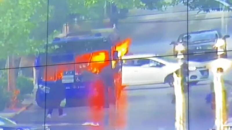 Un grupo de al menos 10 sujetos bloqueó el paso de la máquina y arrojó artefactos incendiarios al interior, por lo que comenzó a arder.