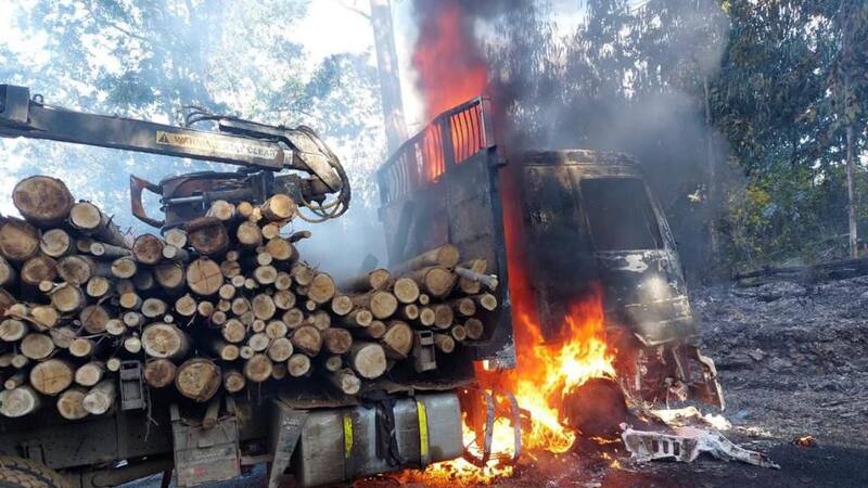 Hasta ese lugar llegó un grupo de encapuchados, quienes rociaron líquido acelerante a las cabinas de tres maquinas forestales y un bus destinado a comedor. Tras incendiar las máquinas, robaron la garra de un trineumático y sus motores de tiro.
