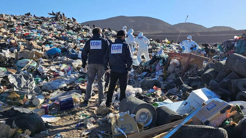 Funcionarios de la Policía de Investigaciones (PDI) y de la Fiscalía ECOH se encuentran investigando el hallazgo de un cadáver en el relleno sanitario municipal de Copiapó, en la Región de Atacama.