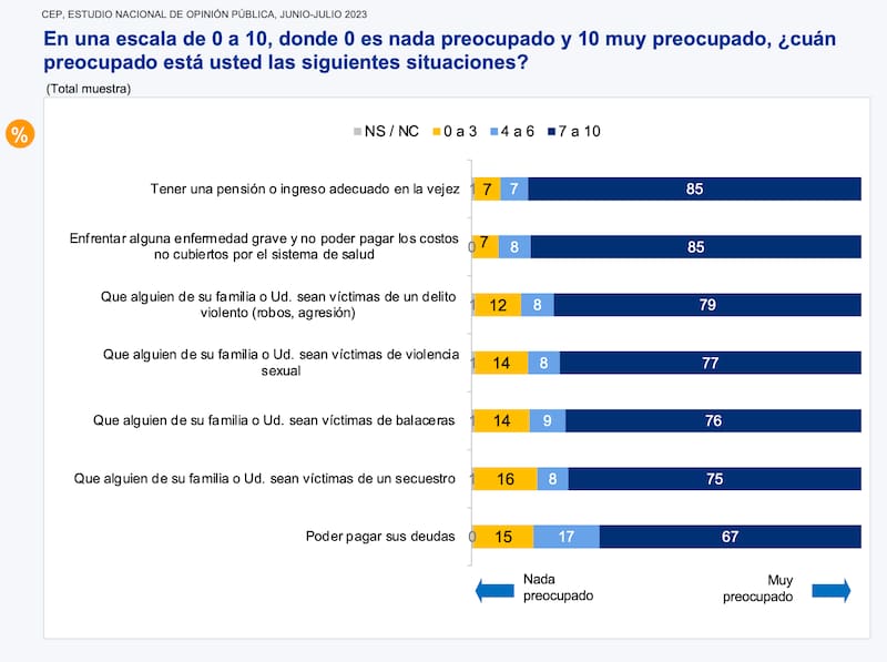 De acuerdo al último Estudio Nacional de Opinión Pública del Centro de Estudios Públicos (CEP) publicado este jueves 27 de julio, las mayores preocupaciones de la ciudadanía se centran alrededor de los temas de pensión, salud y delincuencia.
