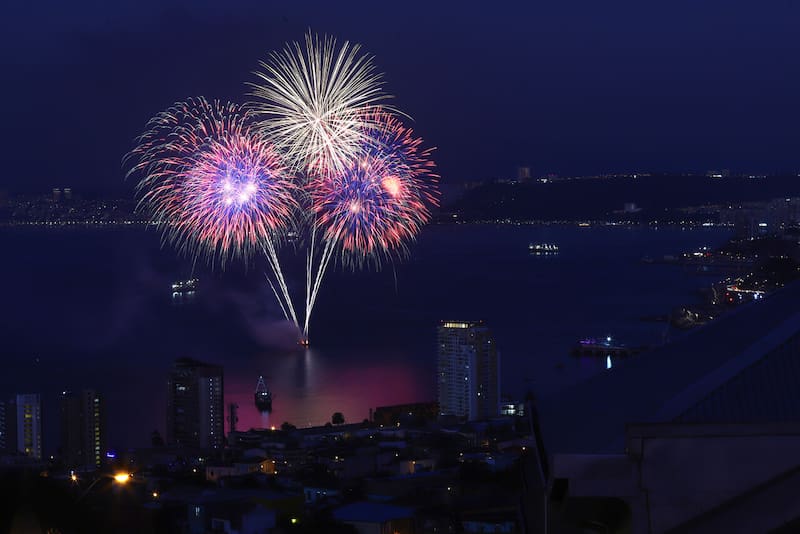Ensayos de fuegos artificiales iluminan el borde costero previo al Año Nuevo en Viña del Mar y Valparaíso