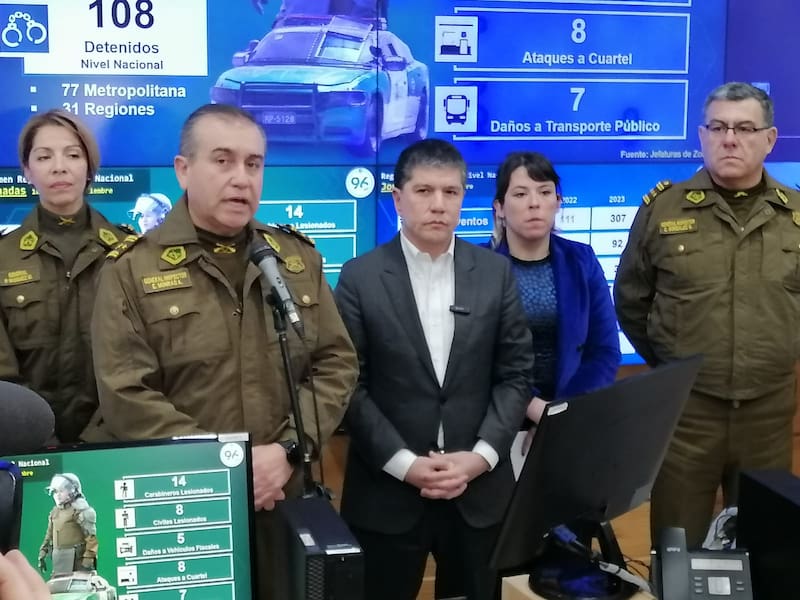 El director nacional de Orden y Seguridad de Carabineros, general inspector Enrique Monrás, entregó las cifras de ambos días. En total, entre el 10 y el 11, hubo 364 eventos de desórdenes y 108 detenidos.