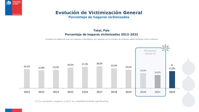 La cifra de victimización general en 2022 fue de 21,8%. El 2019, antes del coronavirus, llegó a 23,6%.