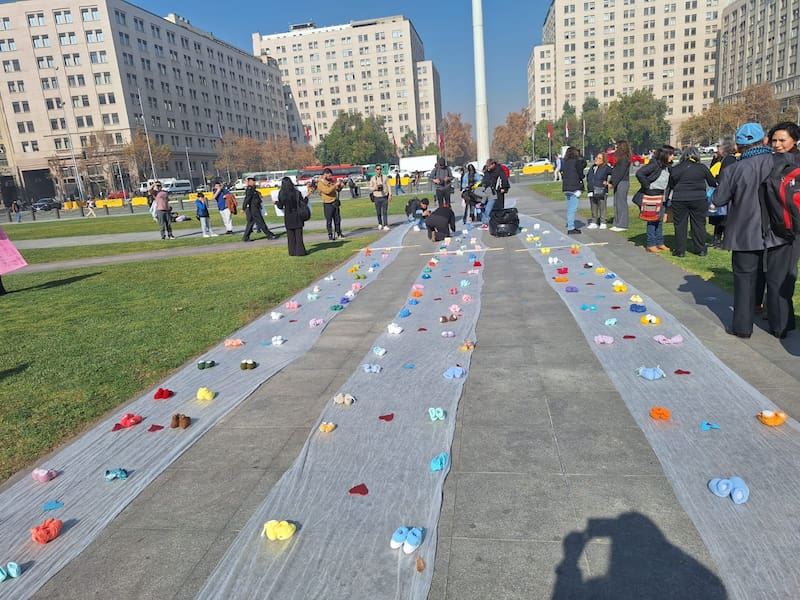 En el frontis de La Moneda, la agrupación realizó una instalación denominada “Tejiendo Esperanza”, la que consta de 500 pares de zapatos tejidos por madres a lo largo del país. Tras ese gesto, se dirigieron a la Corte Suprema. “Fuimos a agradecer”, indicó Rodríguez.
