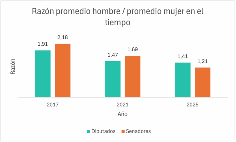 El estudio destaca, igualmente, que con el correr de los años la brecha se ha ido acortando, pues en años anteriores las diferencias eran muchísimo mayores. Por ejemplo, en la elección de diputados de 2019, los hombres recibieron un 91% más que las mujeres, y en la de senadores, un 69% más.