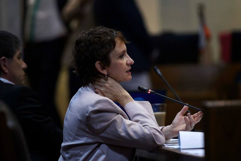 La jefa de gabinete fue la encargada de defender la reforma constitucional ante el hemiciclo, ocasión en que aseguró que la moción no contribuye a un “relajo” en el control del Parlamento sobre la aplicación del estado de excepción.