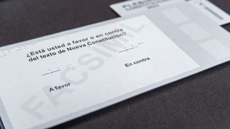 El electorado recibirá una papeleta con la pregunta: “¿Está usted a favor o en contra del texto de Nueva Constitución?”. Ante esa interrogante, habrá dos líneas horizontales, la primera con la expresión “A favor” en su parte inferior y la segunda con la expresión “En contra”, a fin de que el votante pueda marcar su preferencia con una raya vertical sobre una de las alternativas.