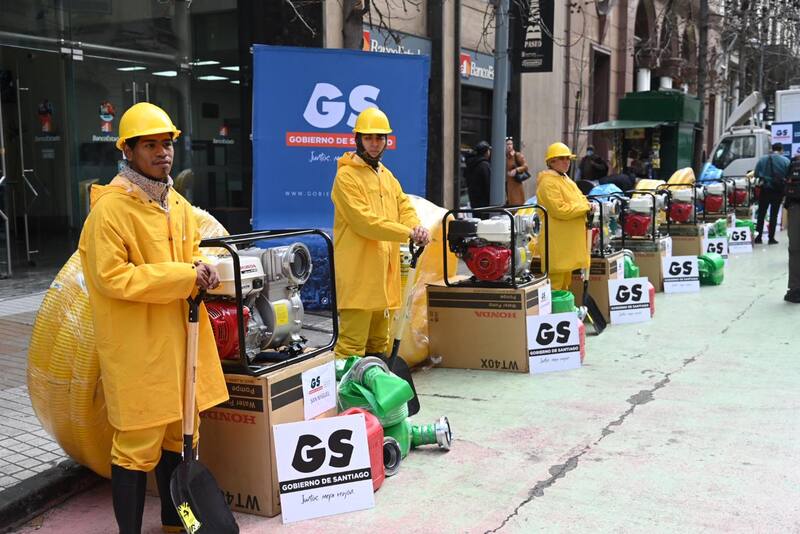Como medida de prevención, esta jornada el gobernador Claudio Orrego hizo entrega de 25 motobombas "de última generación" que ayudarán en los trabajos municipales en caso de inundaciones en la Región Metropolitana.