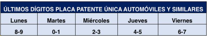 El calendario de restricción informado por las autoridades, y que tendrá aplicación práctica a contar de este lunes 3 de mayo y hasta el mes de agosto establece: