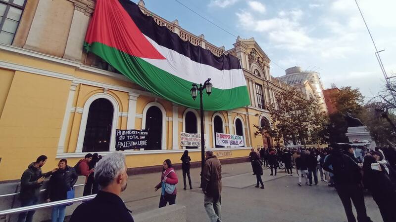 Estudiantes de la Universidad de Chile realizaron una manifestación en la Casa Central de la institución de educación superior, llamando a sus autoridades a que rompan relaciones con planteles israelíes en condena a los ataques del gobierno de Benjamin Netanyahu en Gaza.