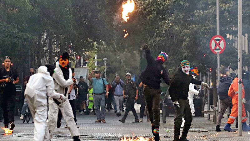A partir de las 8.00 horas se iniciaron los incidentes en el entorno del Instituto Nacional, donde -al igual que a fines de 2019- aparecieron manifestantes vestidos con overoles y máscaras, quienes se enfrentaron con la policía con bombas molotov durante casi toda la mañana. Carabineros respondió con gases, lo que dejó como resultado siete personas detenidas. Todo el comercio del sector tuvo que cerrar.
