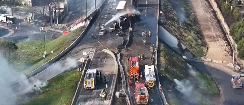 En ese contexto, el gobernador confirmó que al momento de los hechos había otros vehículos en la autopista, y que “se calcula que por lo menos en la carretera deben haber unos siete o nueve vehículos quemados, más allá de todos los vehículos que están quemados en la empresa que está al lado, de una desarmaduría”.