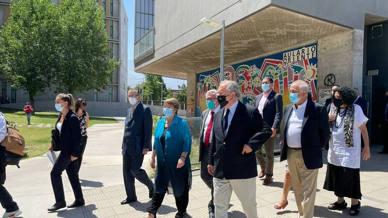 La Alta Comisionada para los Derechos Humanos de Naciones Unidas, Michelle Bachelet, visitó este viernes el campus Juan Gómez Millas de la Universidad de Chile, en la comuna de Ñuñoa, para conocer las obras que se han desarrollado en el recinto la última década.