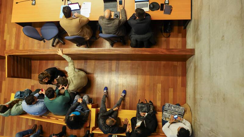 La audiencia de este miércoles tuvo lugar en la sala 101, de la torre D del Centro de Justicia, en una modalidad mixta, telemática y presencial.