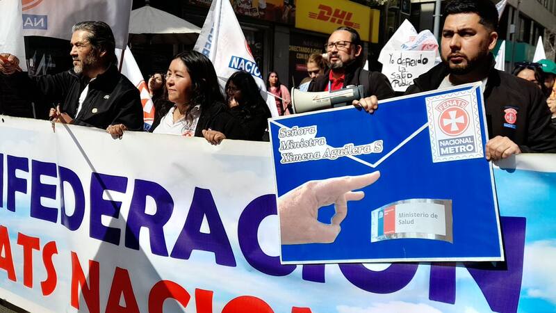 En el marco del paro nacional convocado por la Fenats (Federación Nacional de Trabajadores de la Salud) que comenzó ayer martes y que finalizará este 30 de agosto, esta jornada trabajadores del gremio llegaron hasta el Ministerio de Salud para entregar un “sobre azul” a la titular de la cartera, la ministra Ximena Aguilera, acusando el incumplimiento de compromisos por parte del gobierno, tales como la Asignación Técnica Universal, Carrera Funcionaria, y otros.