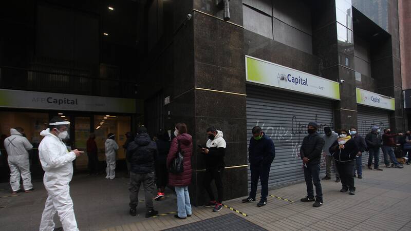 Filas se registran fuera de sucursales de AFP en el centro de Santiago