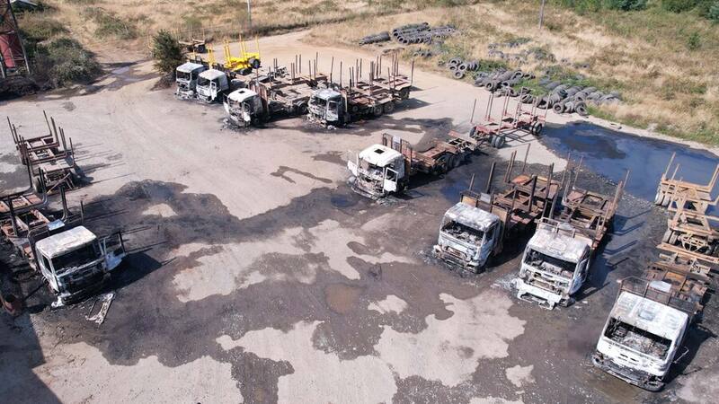 Un ataque incendiario ejecutado por sujetos encapuchados en la Región de Los Ríos dejó como saldo un total de 19 camiones con remolque quemados y una bodega de 700 metros cuadrados destruida, la madrugada de este martes.