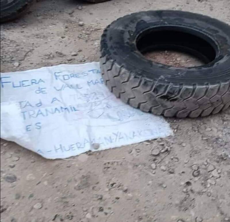 Los atacantes dejaron un lienzo exigiendo el retiro de las empresas forestales de la zona y abandonaron el lugar.