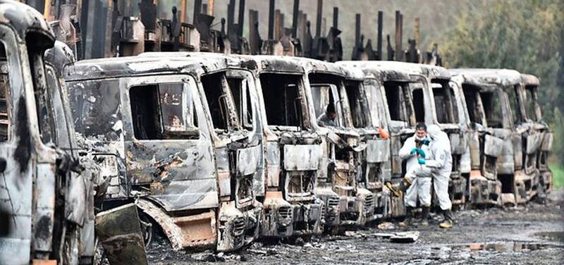 Fiscalía investiga ataque incendiario que dejó 19 camiones quemados en Mariquina