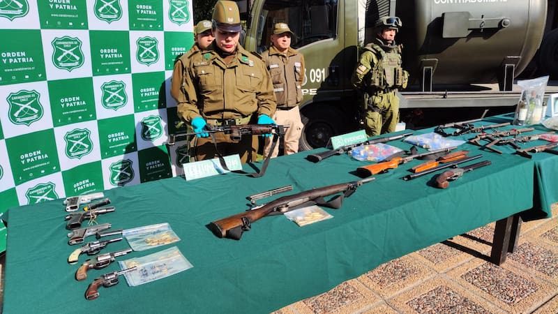 “El armamento ya está dando algunas coincidencias en el sistema Ibis, lo que significa que parte de este armamento ya ha sido utilizado en Santiago e incluso fuera de la Región Metropolitana, por lo tanto, estamos hablando de armamento que no estaba guardado, sino que se utilizaba”, explicó el jefe del OS9 de Carabineros, general Jaime Velasco.