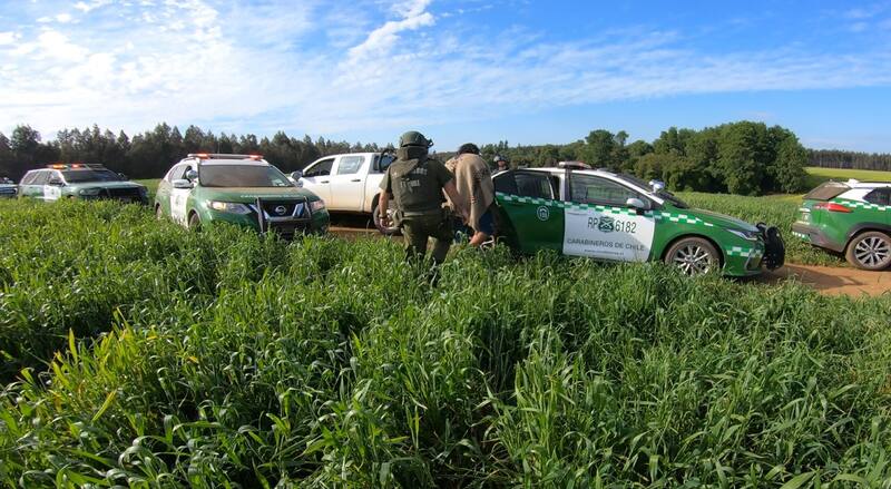 En virtud de una denuncia de los propietarios del fundo Palermo ante la Fiscalía de Collipulli, personal de Carabineros que acudió al predio sorprendió a una decena de personas que permanecía en la propiedad en forma pacífica y concretó la detención de cinco comuneros, todos mayores de edad, procediendo de acuerdo a la nueva normativa legal.