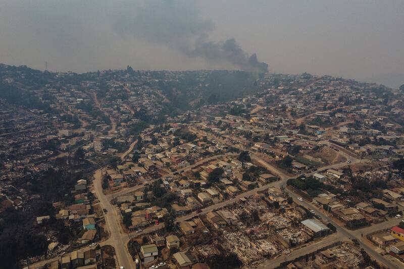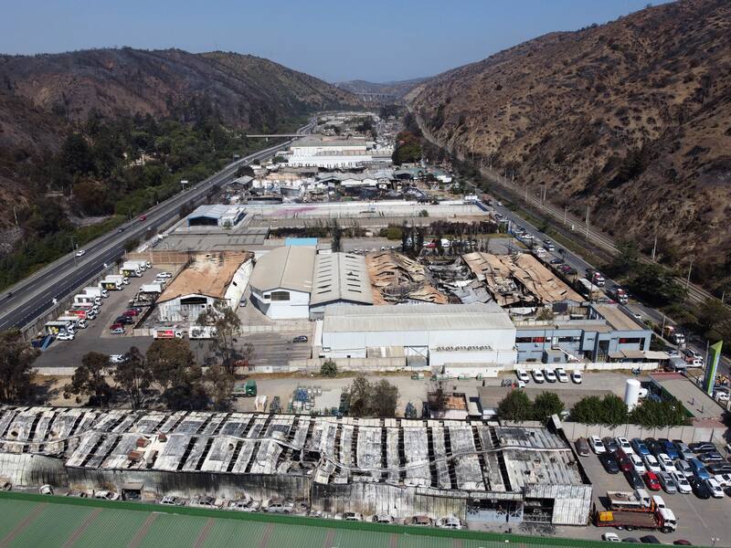 El barrio empresarial El Salto, en Viña del Mar, también sufrió los efectos de los incendios en la región. Hasta el momento, según Fernando Reitz, presidente de la Corporación El Salto, se ha identificado que al menos unas 10 empresas sufrieron pérdidas por el fuego.