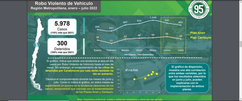 Sin embargo, Carabineros da cuenta de un quiebre en la tendencia, o un descenso en los casos, a partir de junio y julio. Esto, indican, coincide con la implementación de dos planes de Carabineros: Anen, enfocado en antiencerronas, y el Centauro, concentrado en la prevención.