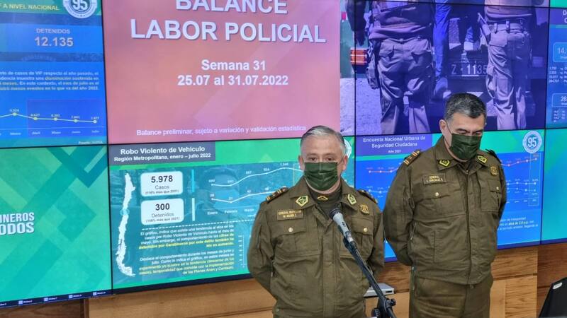 Respecto al plan antiencerronas, que considera cifras desde el 23 de mayo al 31 de julio, se han reportado 160 detenidos, todos en flagrancia. El 71% (113) de los aprehendidos registra detenciones anteriores en esta institución. Además, se han recuperado 51 autos. Con todo, son 5 comunas de la RM las que concentran el 64% de los detenidos por estos hechos: Huechuraba, San Bernardo, Cerro Navia, La Pintana y Pudahuel.