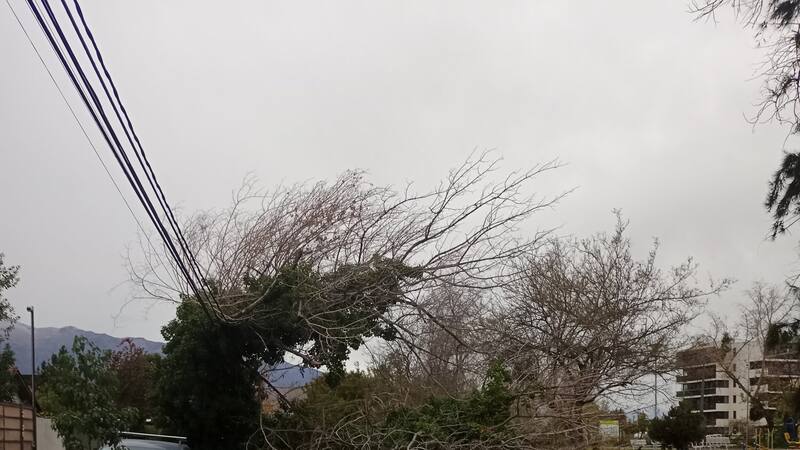 Fuertes ráfagas de viento se han registrado este jueves en la Región Metropolitana, lo que ha provocado la caída de árboles y cortes de luz en algunos sectores.