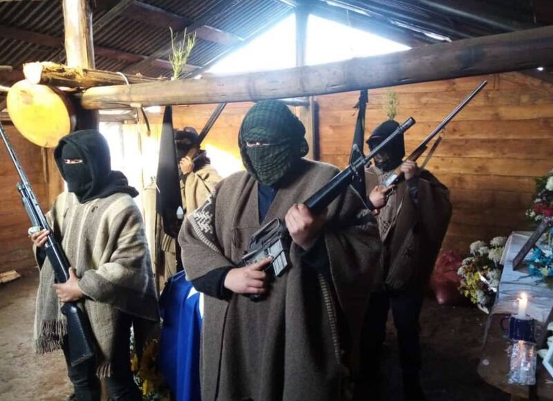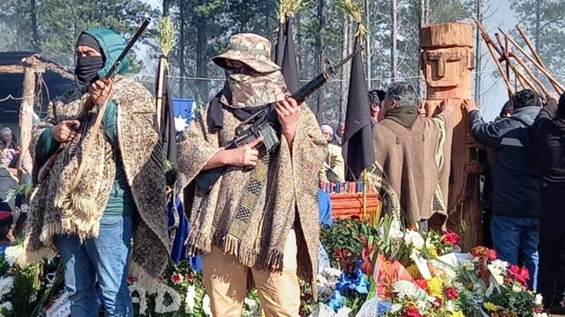 El lunes de esta semana se realizó el velorio de Marchant Gutiérrez, custodiado por comuneros mapuche con armamento. En fotografías difundidas por Werken Noticias y viralizadas luego en redes sociales, se mostraba un grupo de individuos encapuchados resguardando el féretro, portando escopetas y una M16.