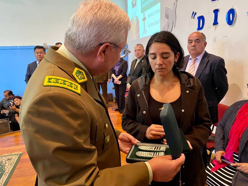 “Frente a su familia, frente a sus camaradas, frente a la comunidad por la que dio su vida, anuncio que he dispuesto el ascenso extraordinario al grado de suboficial mayor como un reconocimiento póstumo a su vocación, compromiso y entrega por la patria. Además como testimonio de su legado, en la Escuela de Suboficiales, plantel que lo acogió en sus últimos años, se ha resuelto mediante la resolución N° 139, de fecha 14 de marzo de 2023, de la ESUCAR Grupo Concepción, denominar el patio central y corazón del plantel como Suboficial Mayor Álex Salazar Rodríguez, en su memoria”, anunció el jefe de la policía uniformada.