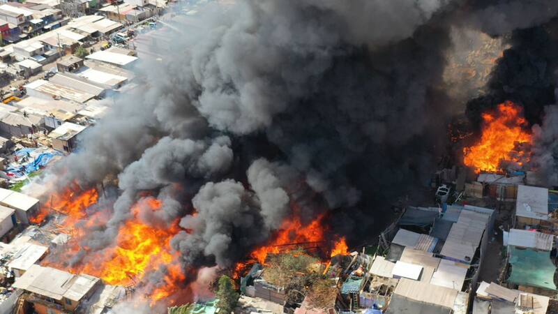 Gigantesco incendio consume cerca de 100 viviendas en campamento de Iquique