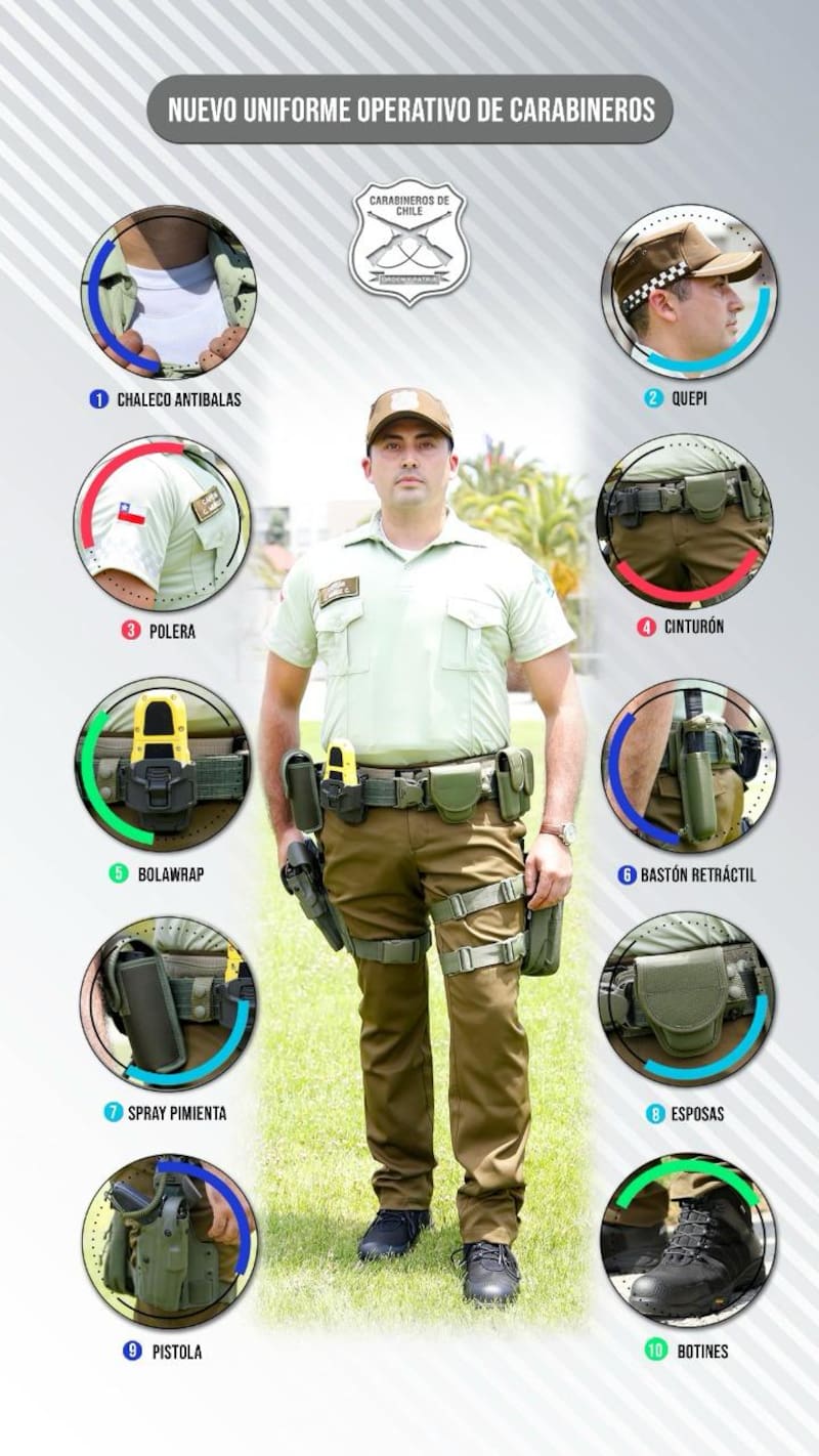 Asimismo, se anunció la implementación de un nuevo uniforme para más de 1.500 carabineros en las comunas de Santiago, Estación Central, San Bernardo y La Pintana, además del Aeropuerto Nuevo Pudahuel. Actualmente es aplicado en la Región de Tarapacá y se espera que para el 2025 esté en toda la RM y, posteriormente, sea distribuido a todo el país de forma paulatina.