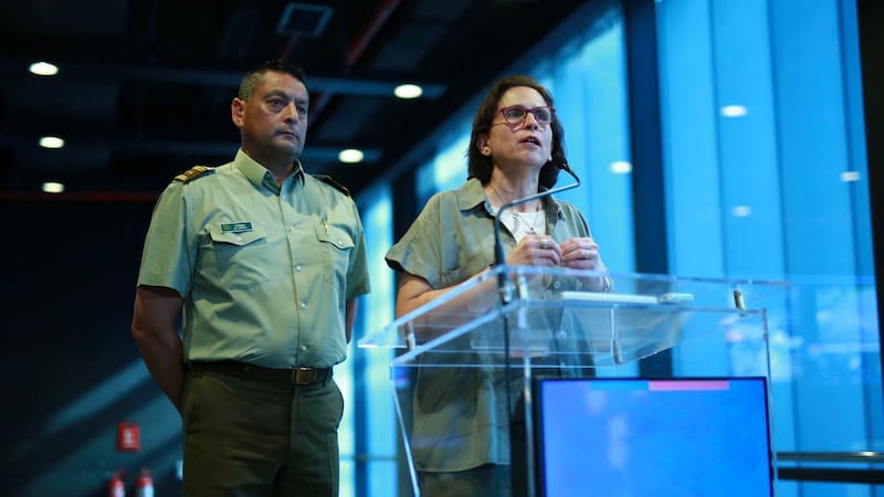 La subsecretaria de Prevención del Delito, Carolina Leitao, junto al jefe de la Zona Santiago Oeste de Carabineros, general Marcelo Lepin, entregó este jueves un balance de los resultados del piloto del Sistema Integrado de Teleprotección con Inteligencia Artificial (Sitia), el cual logró la desarticulación de 10 organizaciones criminales.
