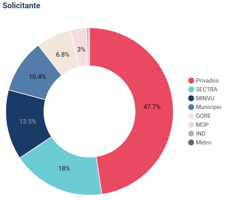 Dentro de los solicitantes de proyectos de ciclovías, el 47,7% son privados, el 18% corresponde al Sectra, mientras que el 13,5% al Minvu, entre otros.