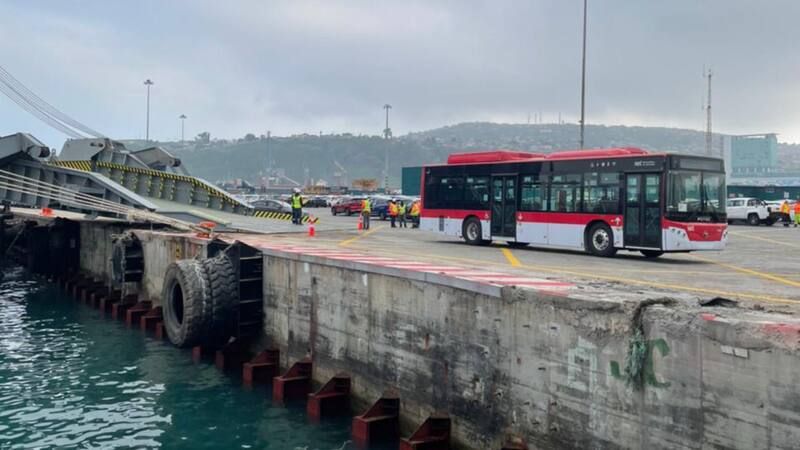 Este lunes, el ministro de Transportes y Telecomunicaciones, Juan Carlos Muñoz, junto a la directora de Transporte Público Metropolitano, Paola Tapia, recibieron en el Puerto de San Antonio el embarque de 95 unidades de buses 100% eléctricos que se integrarán al transporte público en Santiago.